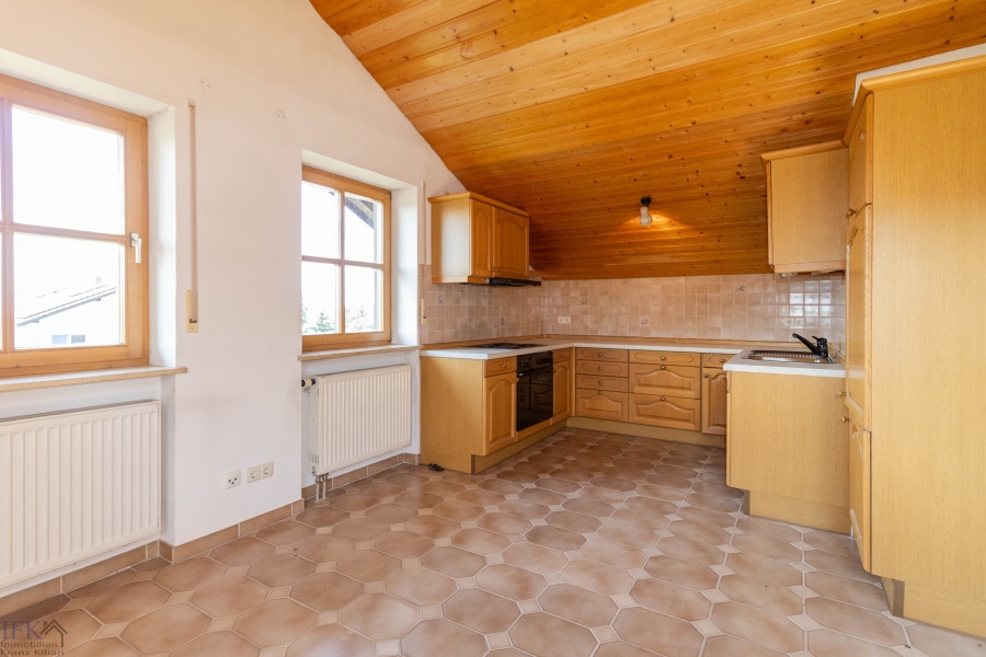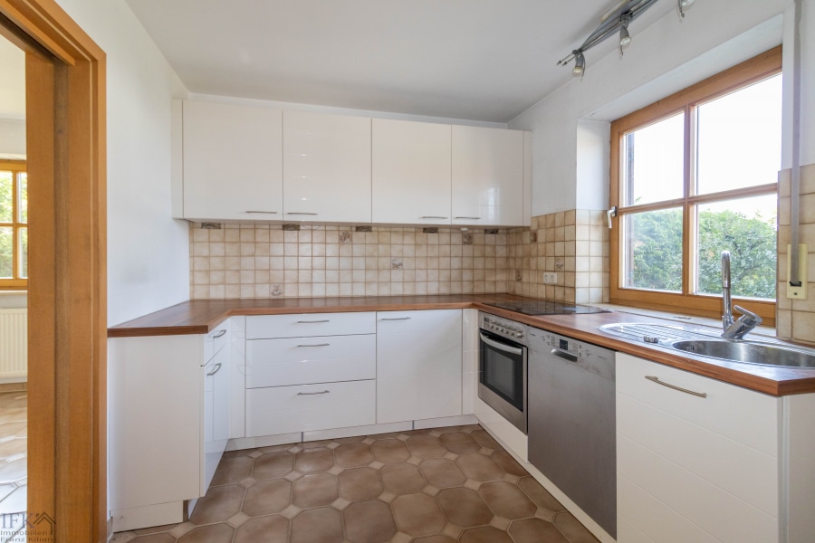 Die Küche verfügt über eine praktische Schiebetür zum Wohnzimmer und kann so nach belieben geschlossen werden oder als offenes lockeres Wohnkonzept dienen. Die Einbauküche sowie Elektrogeräte sind im Kaufpreis bereits enthalten.