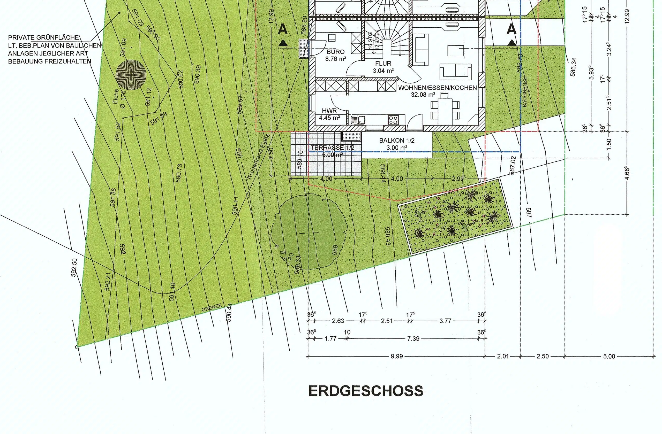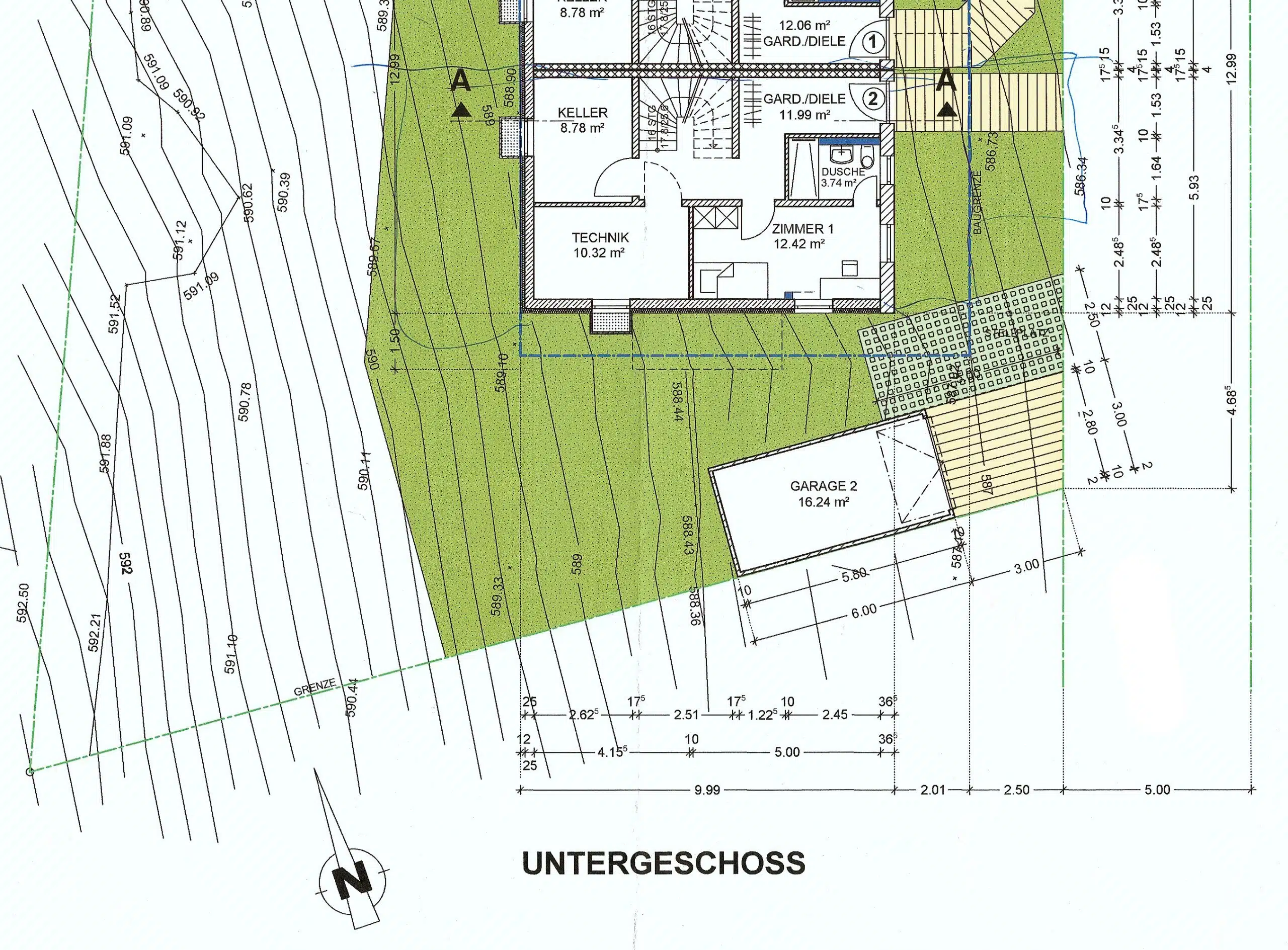 Durch die Hanglage des Grundstücks verfügt das Haus zum Teil bereits im Untergeschoß über helle, lichtdurchflutete Räume.
