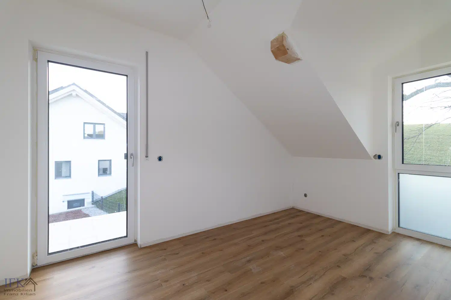 Den traumhaften, unverbaubaren Weitblick ins Grüne Richtung Weilheim und die Gebirgskette können Sie durch große Fensterflächen sowie auf dem ausladenden Balkon geniessen.