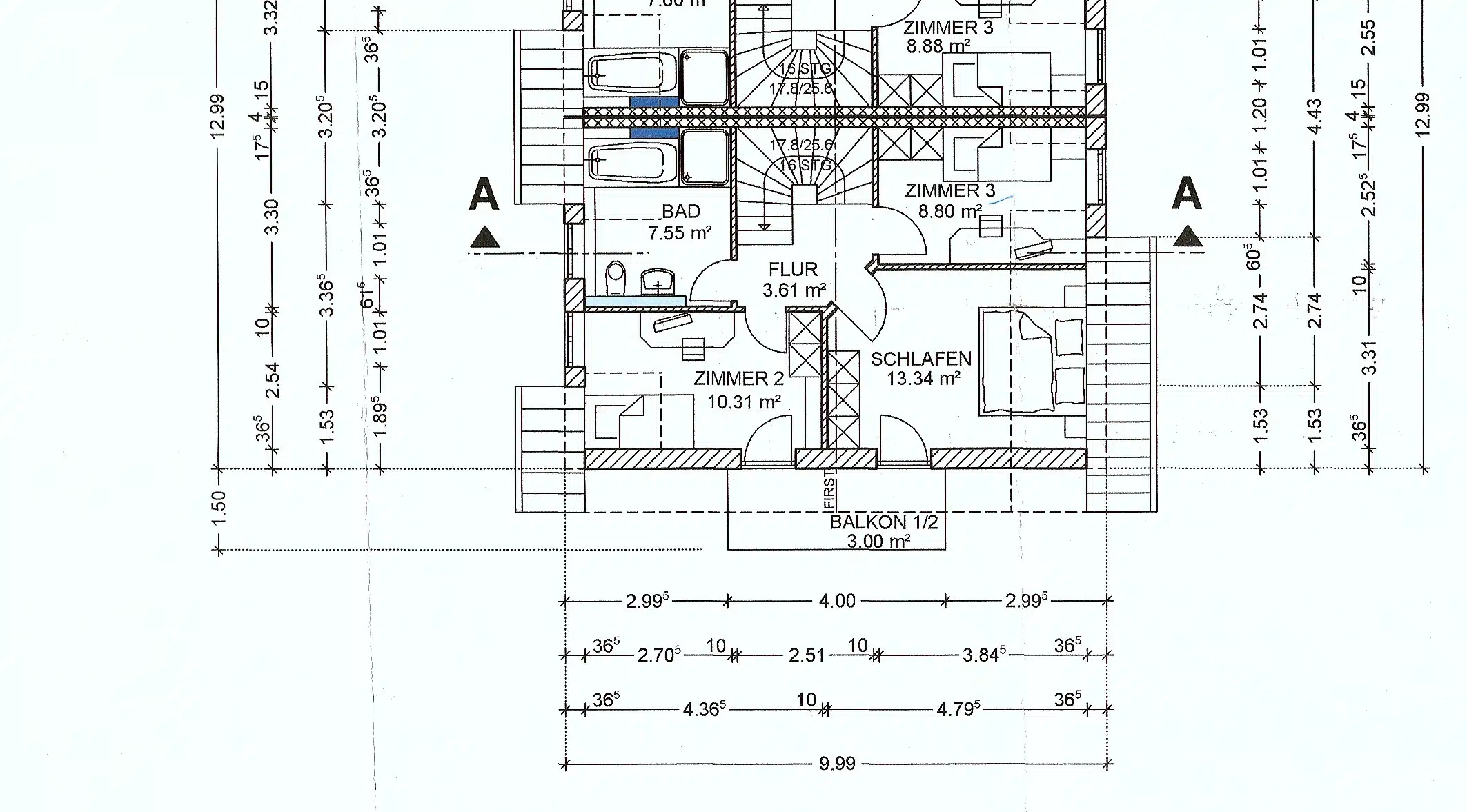 - Innentreppen als Harfentreppe mit Stufen aus Buchenholz