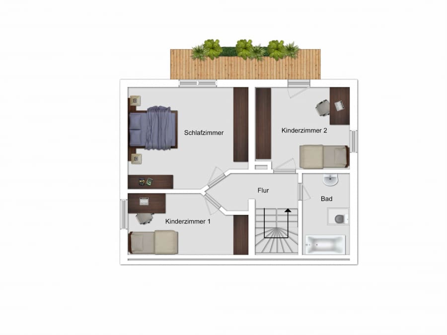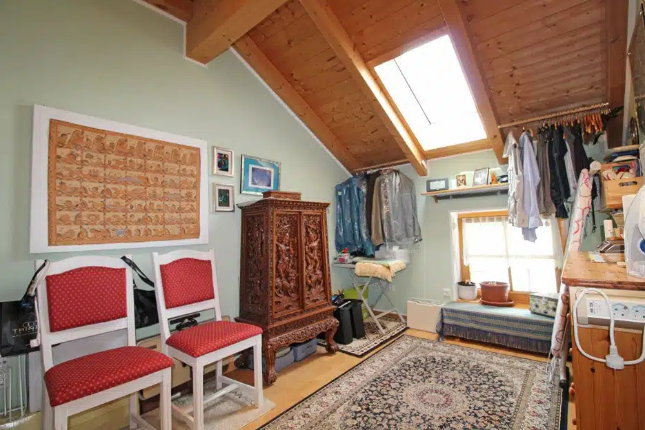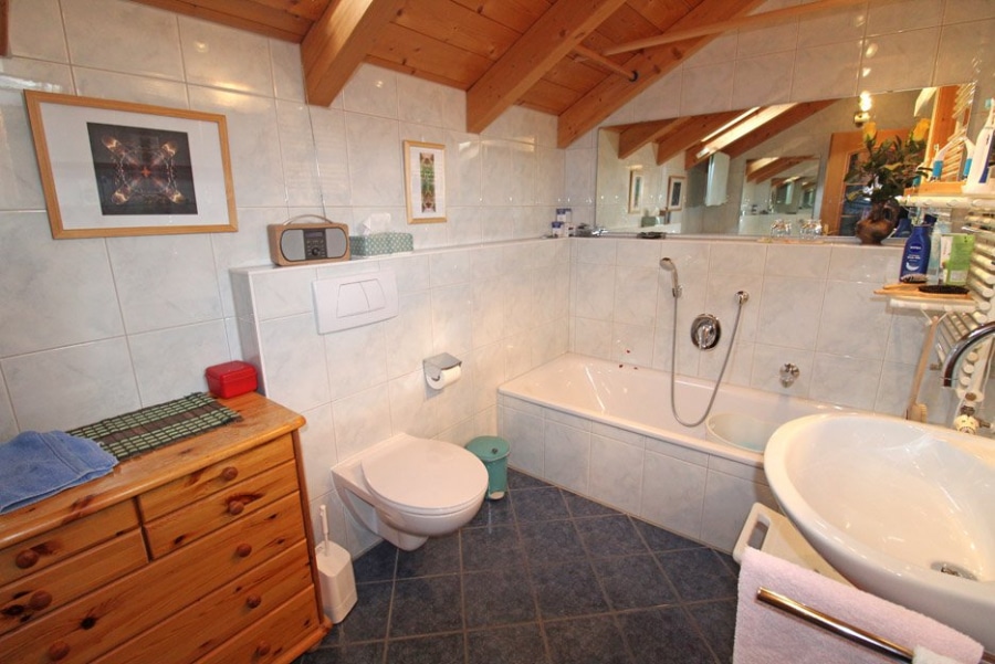 Im Obergeschoss erwarten Sie zwei Zimmer, das Schlafzimmer sowie ein Wannenbad.
