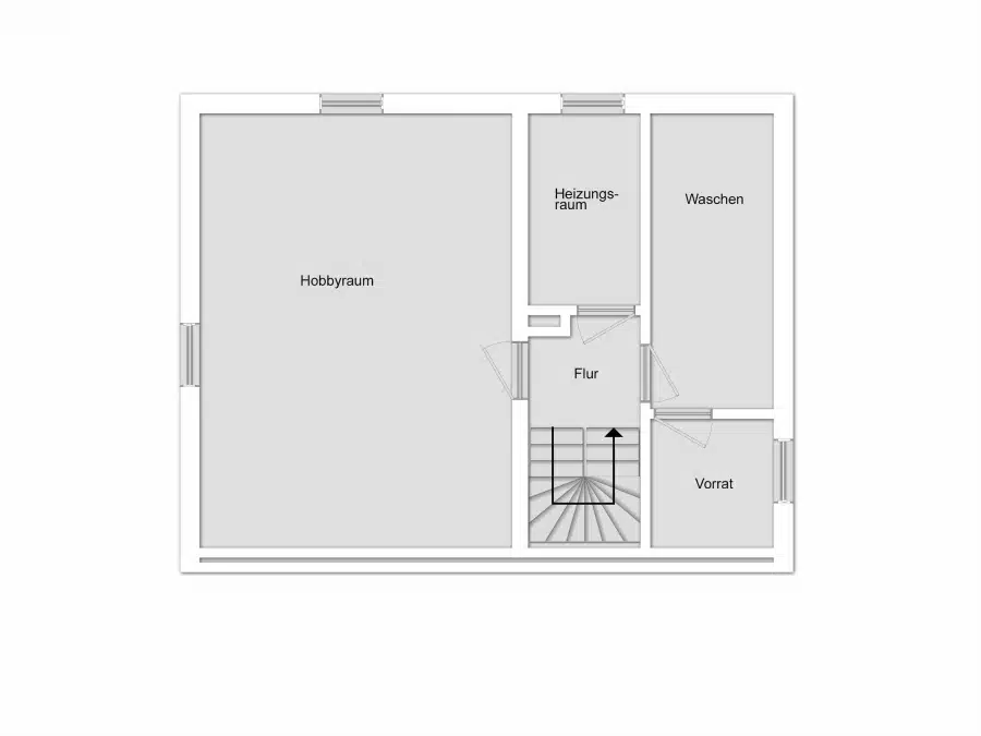 Das Untergeschoss hält sich einen großen, beheizbaren Hobbyraum, den Heizungsraum, den Waschraum sowie einen Vorratsraum vor.