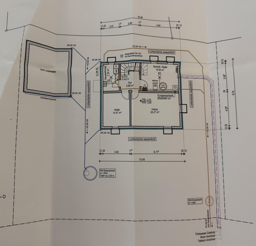 Das Kellergeschoß beherbergt einen Technikraum, einen großen Hobbykeller sowie einen Keller zur Unterbringung.