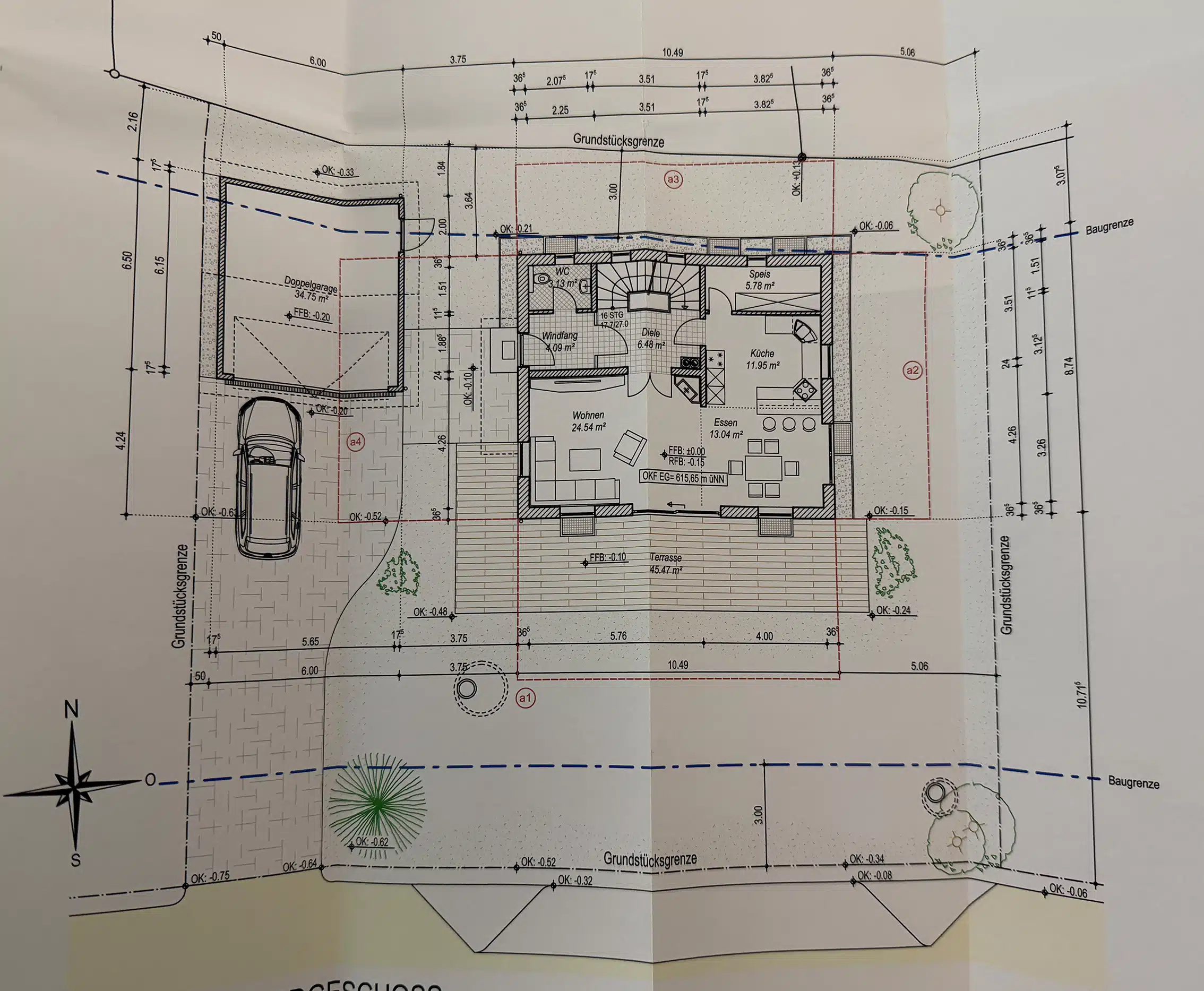 Der Keller wurde in WU-Beton wasserdicht erstellt. Für beste Dämmwerte sorgen Ziegelwände mit 36.5 cm und Perlit-Füllung, eine 3-Fach-Verglasung sowie ein Zimmermannsdachstuhl mit hochwertiger Aufdachdämmung.