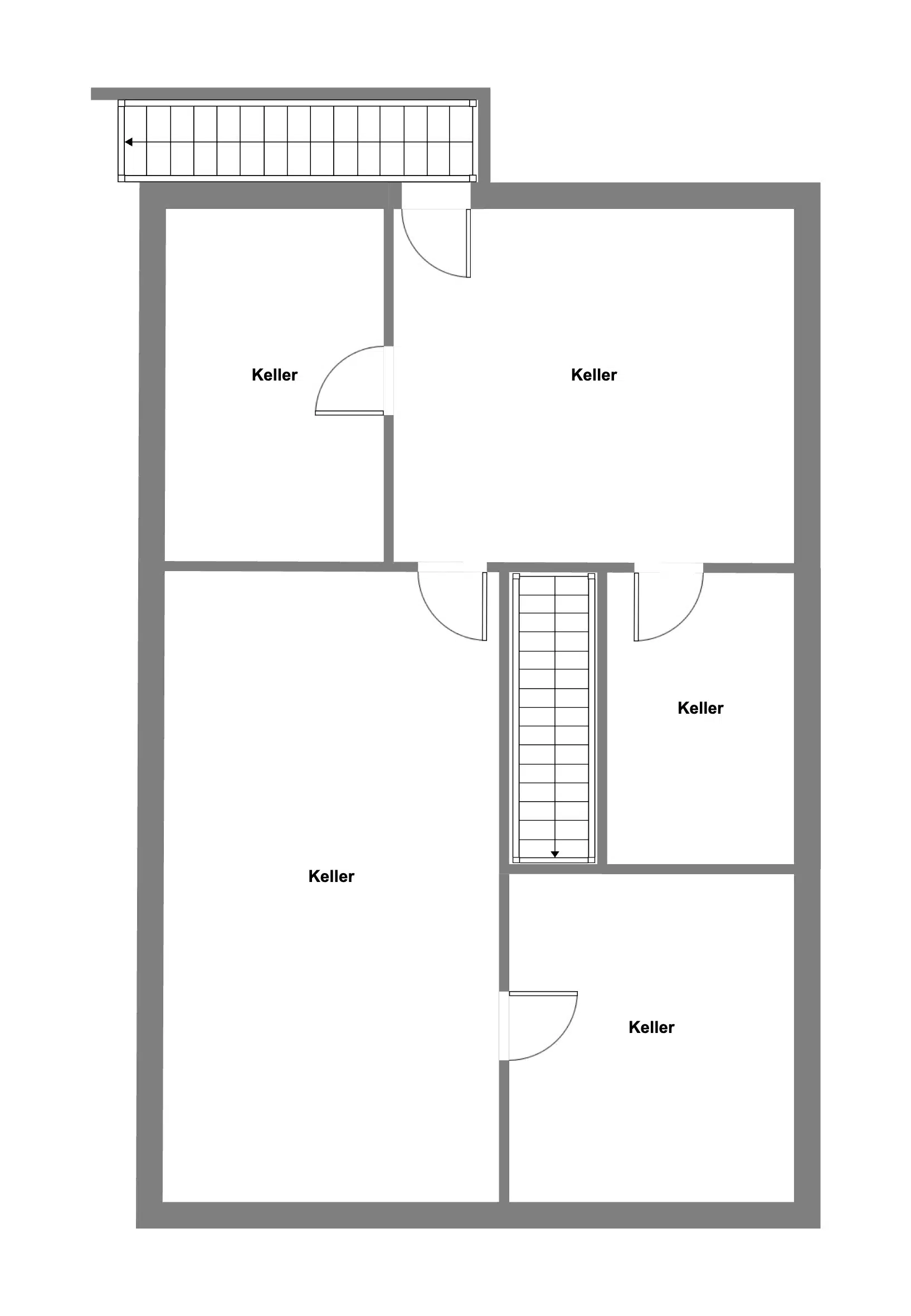 Das komplette Haus ist unterkellert. Der Keller wurde wasserdicht ausgeführt und bietet neben dem Technikraum noch 4 weitere, große Kellerräume. Der Keller kann auch bequem über eine überdachte Aussentreppe erreicht werden.