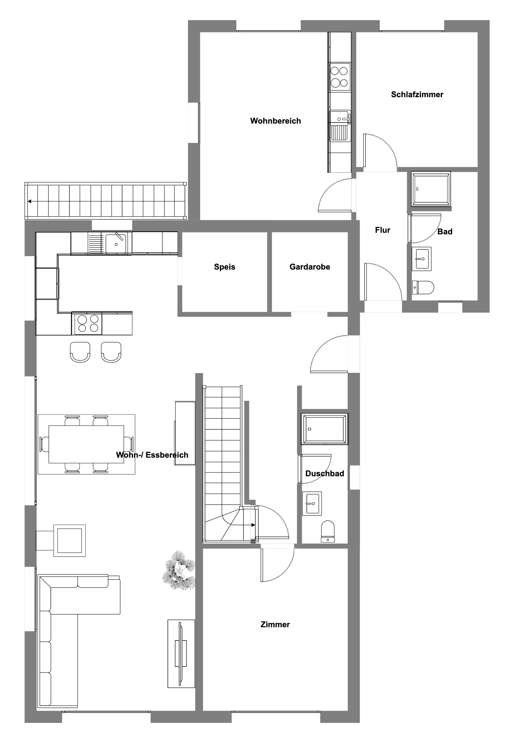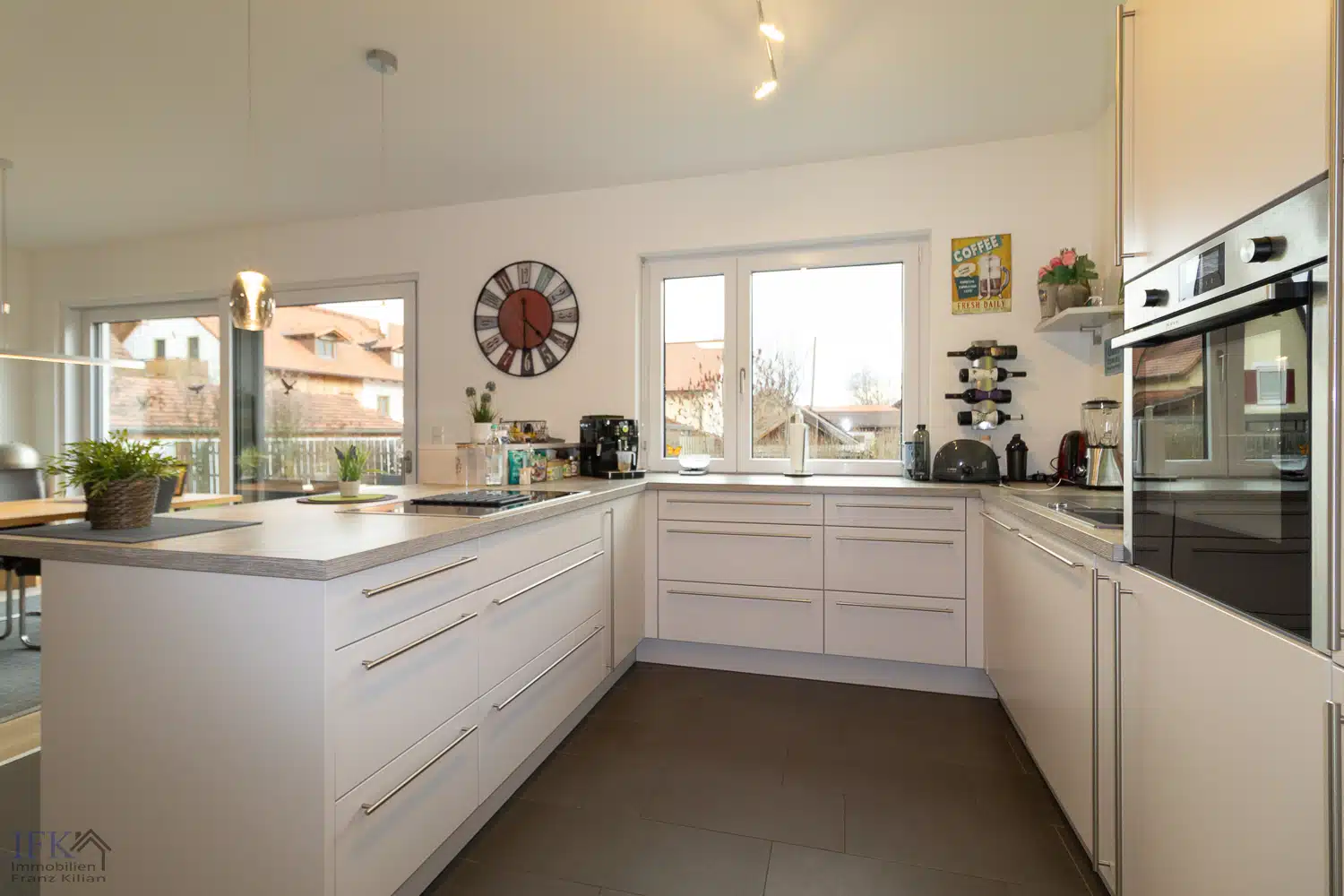 Neben einem Schlafzimmer, einem Gäste-WC samt bodengleicher Dusche, WC und Waschtisch stehen Ihnen hier ein ausladender Wohnbereich zur Verfügung, welcher fliesend in die offene Küche samt Kochinsel überfliesst. Die hochwertige und neuwertige Einbauküche ist bereits im Preis enthalten und verfügt über exklusive Marken-Geräte. Angrenzend befindet sich noch eine praktische Speisekammer.