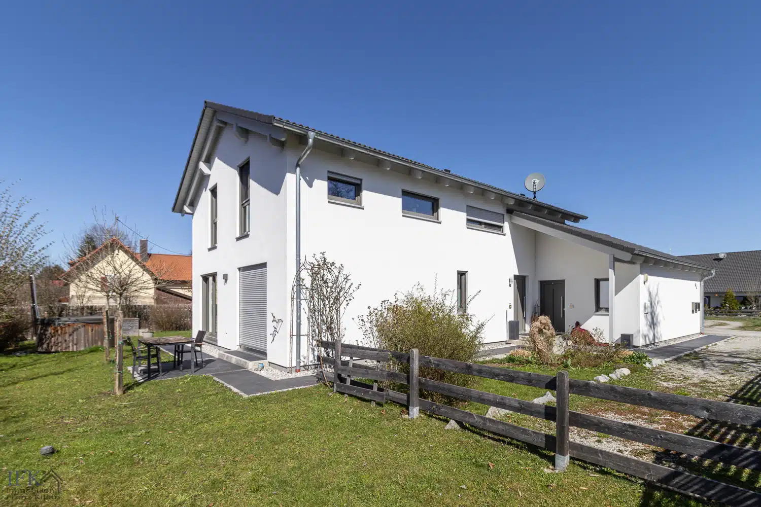 Das Haus wurde im Jahr 2018 in energiesparender Holzständerbauweise mit einem wasserdichten Keller auf einem ca. 770 Quadratmeter großen, ruhig gelegnen Grundstück in sonniger Süd-West-Lage erstellt. Der Erstbezug war im Mai 2019.