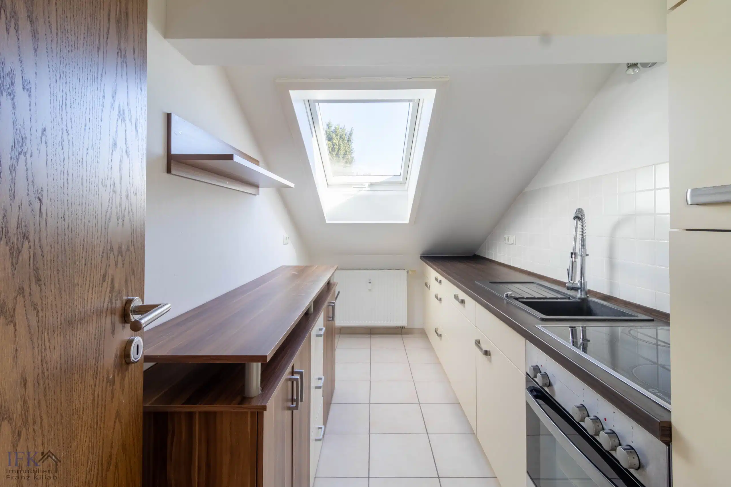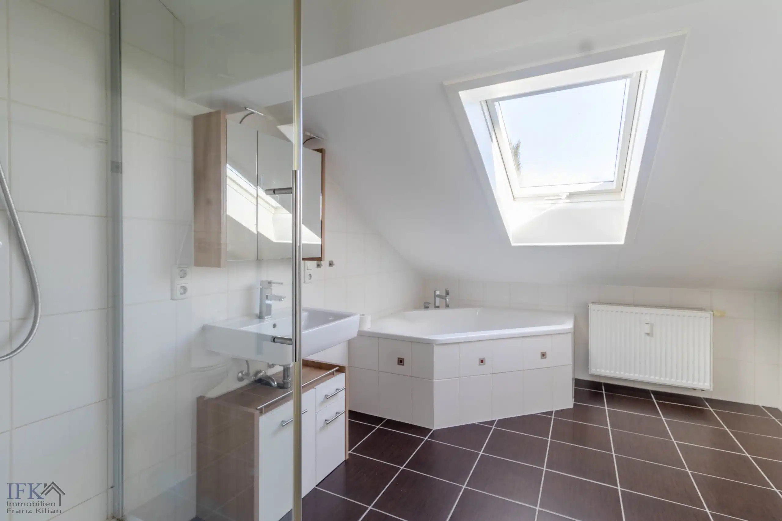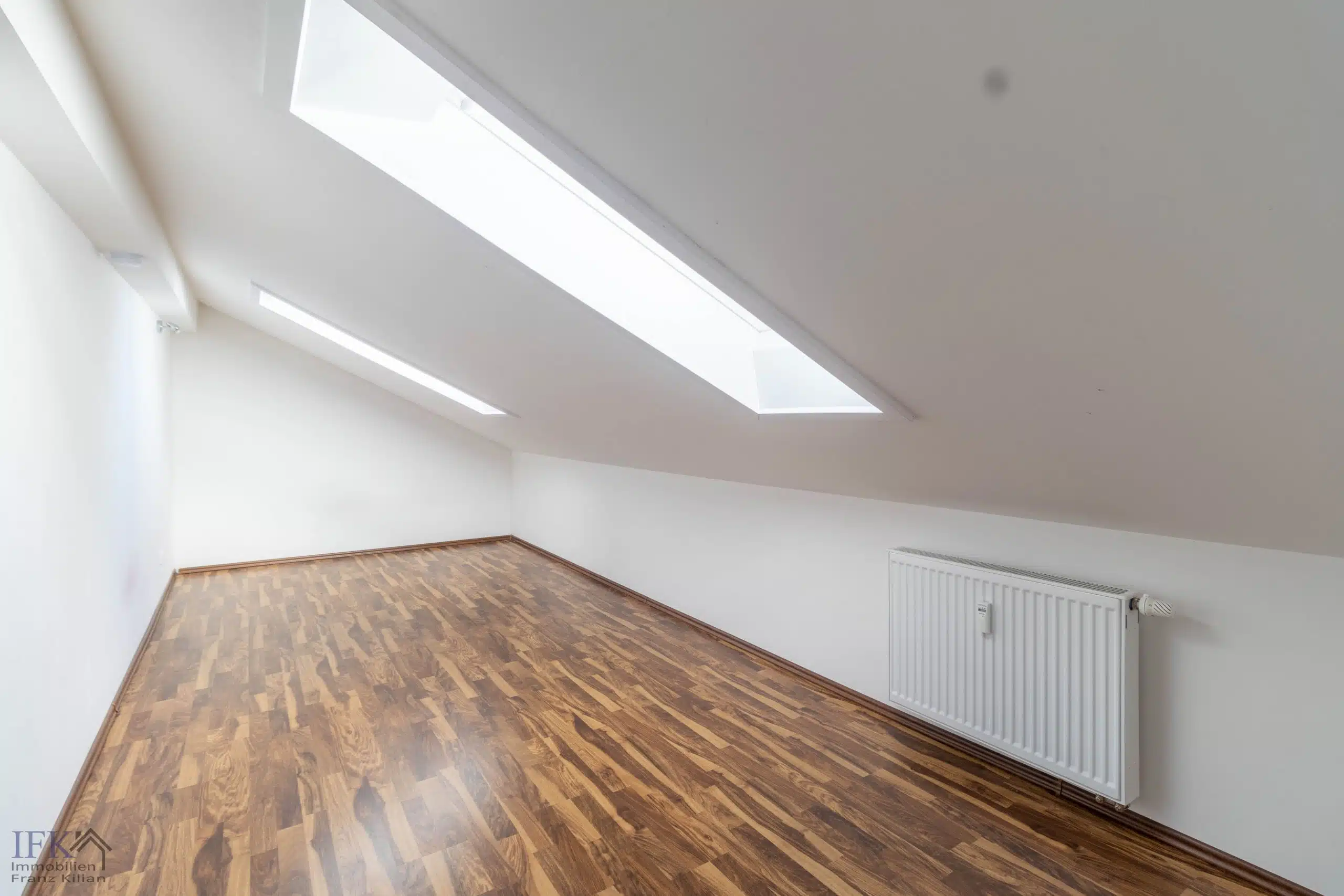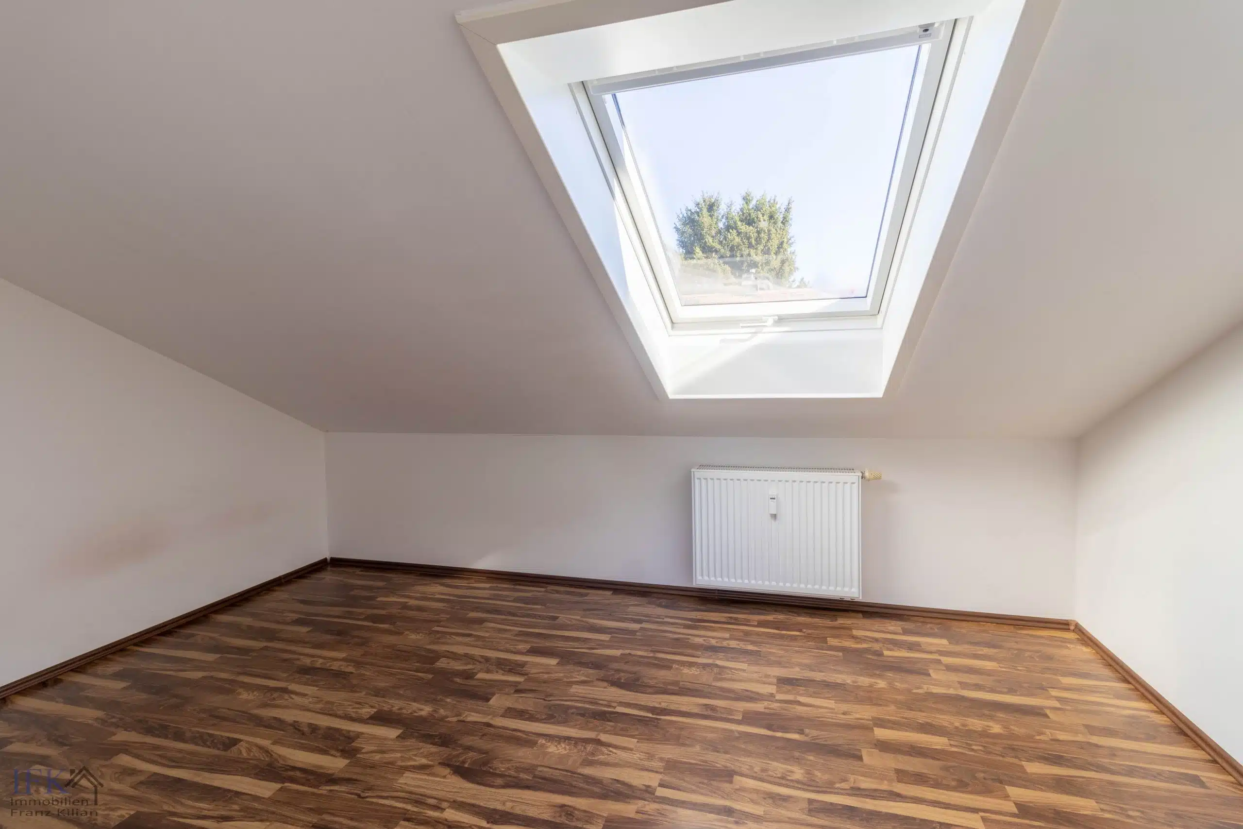 Dachgeschoss: neuwertige, nachträglich ausgebaute Wohnung mit gesamt 58 Quadratmeter Wohnfläche verteilt auf 3 Zimmer innerhalb der Wohnung und 1 Zimmer im Flur.