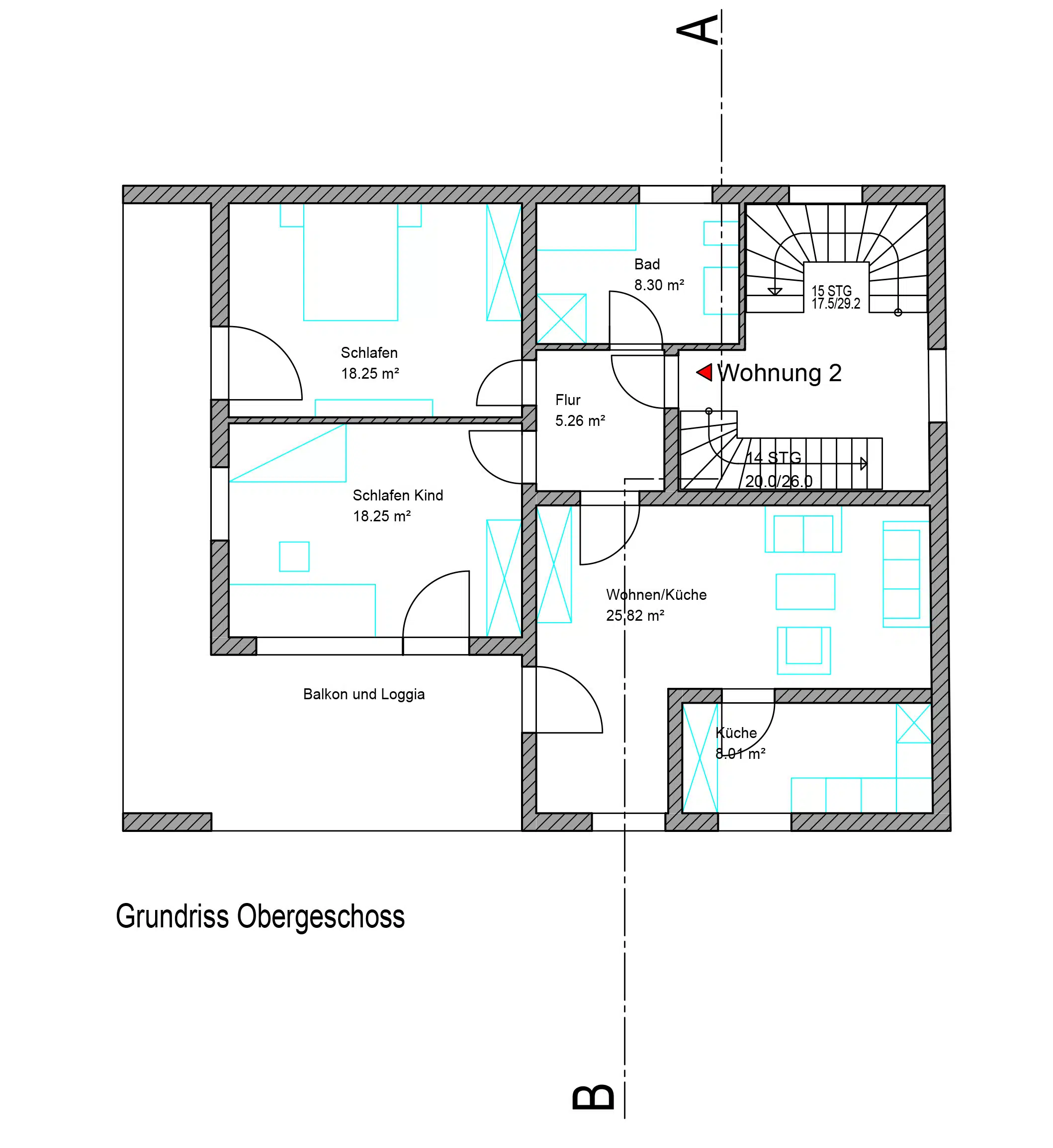 - Geräumiger Balkon mit überdachter Loggia im 1. OG