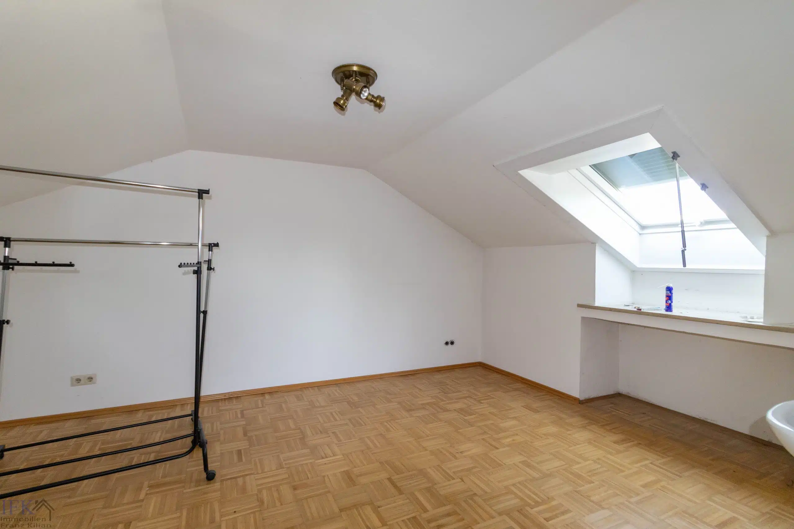 Das Dachgeschoss beherbergt ein charmantes Studiozimmer, das sich ideal als Elternbereich, Atelier oder Jugendzimmer eignet. In der Schräge verfügt das Haus beidseitig über zusätzlichen Stauraum.