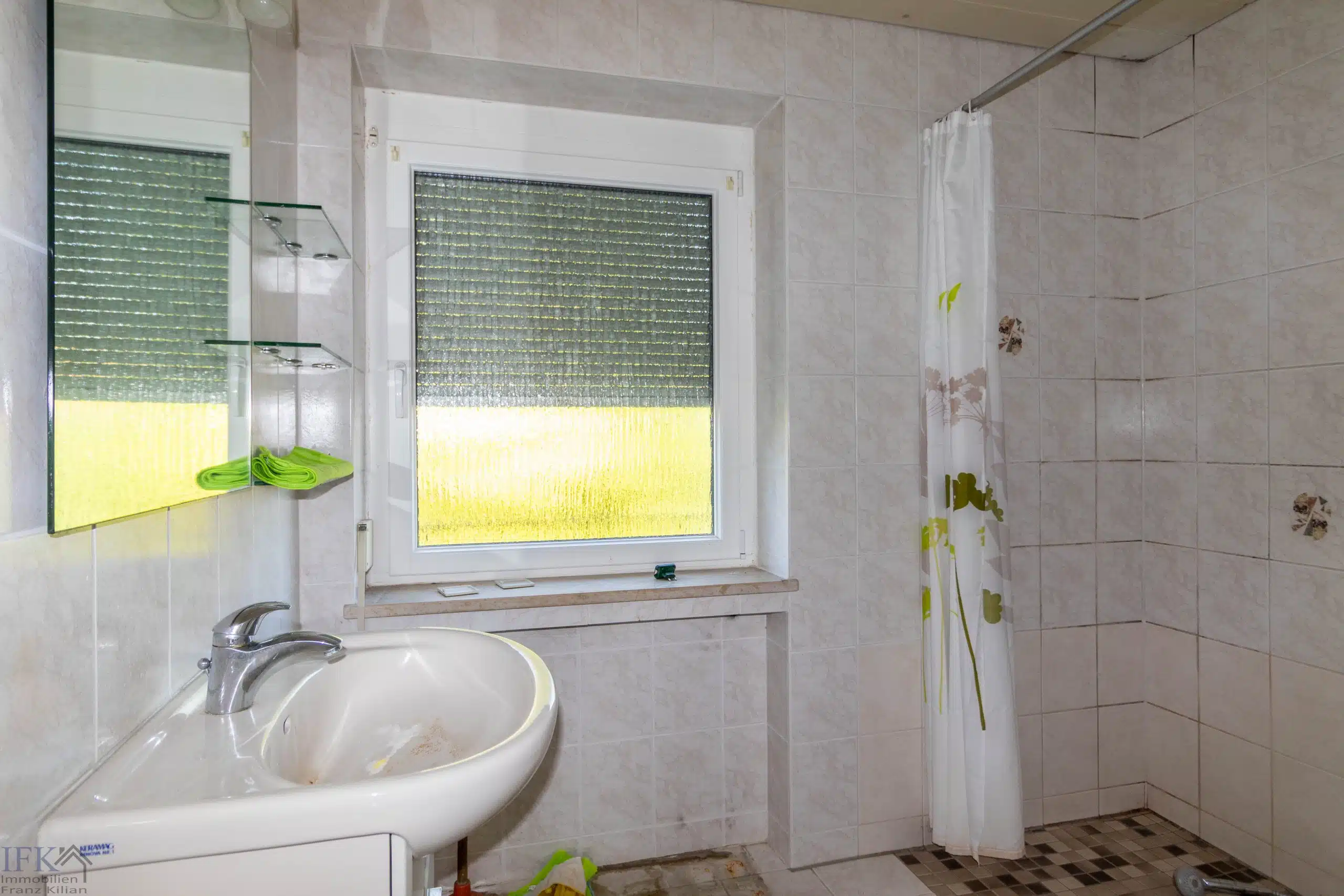 Im Obergeschoss finden Sie drei gut geschnittene Schlafzimmer sowie ein bereits Tageslicht-Badezimmer mit Waschtisch, WC und ebenerdiger Dusche.
