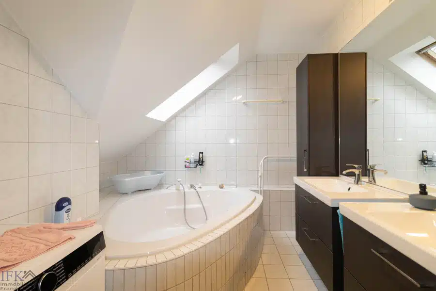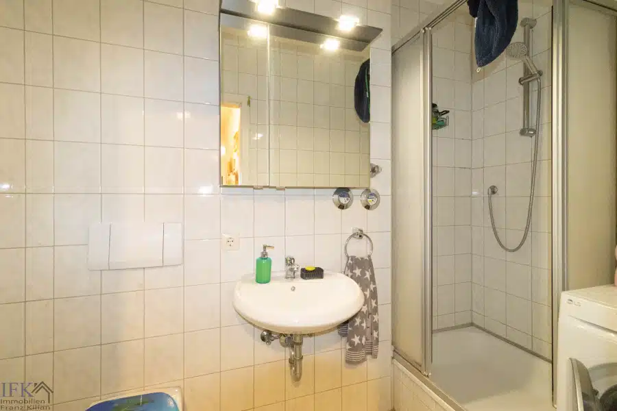 Neben dem Badezimmer mit Eckbadewanne, Waschtisch, WC und Waschmaschinenanschluss verfügt diese Wunderschöne Wohnung noch über ein 2. Badezimmer mit WC Dusche sowie Waschtisch.