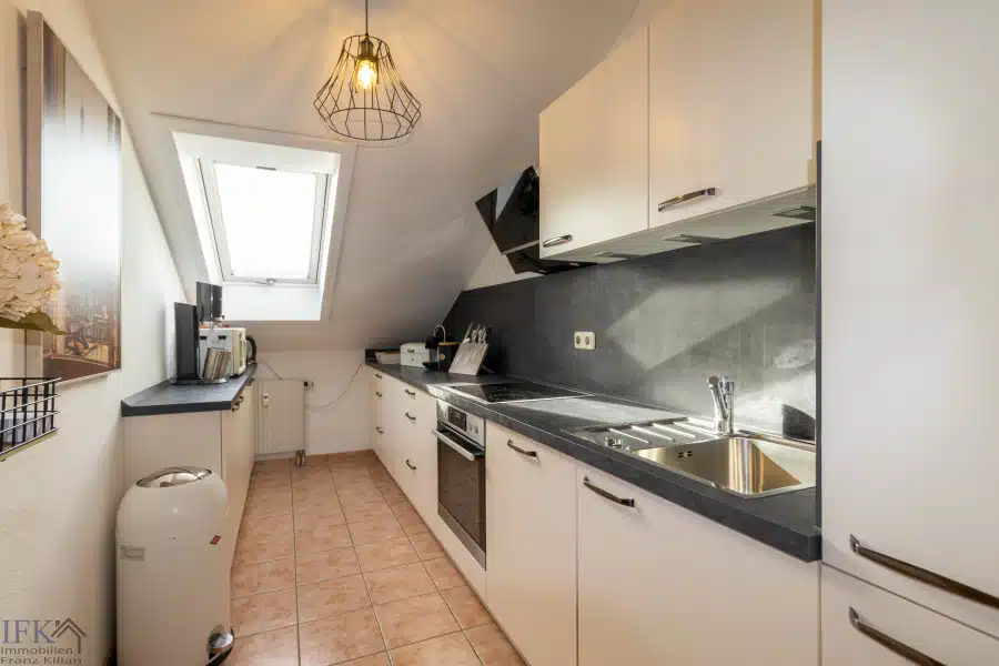 Die gepflegte und moderne Einbauküche samt Marken-Elektrogeräten ist im Kaufpreis enthalten.