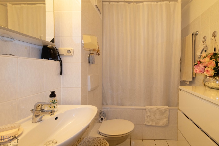 - Badezimmer mit Badewanne sowie Waschmaschinenanschluss